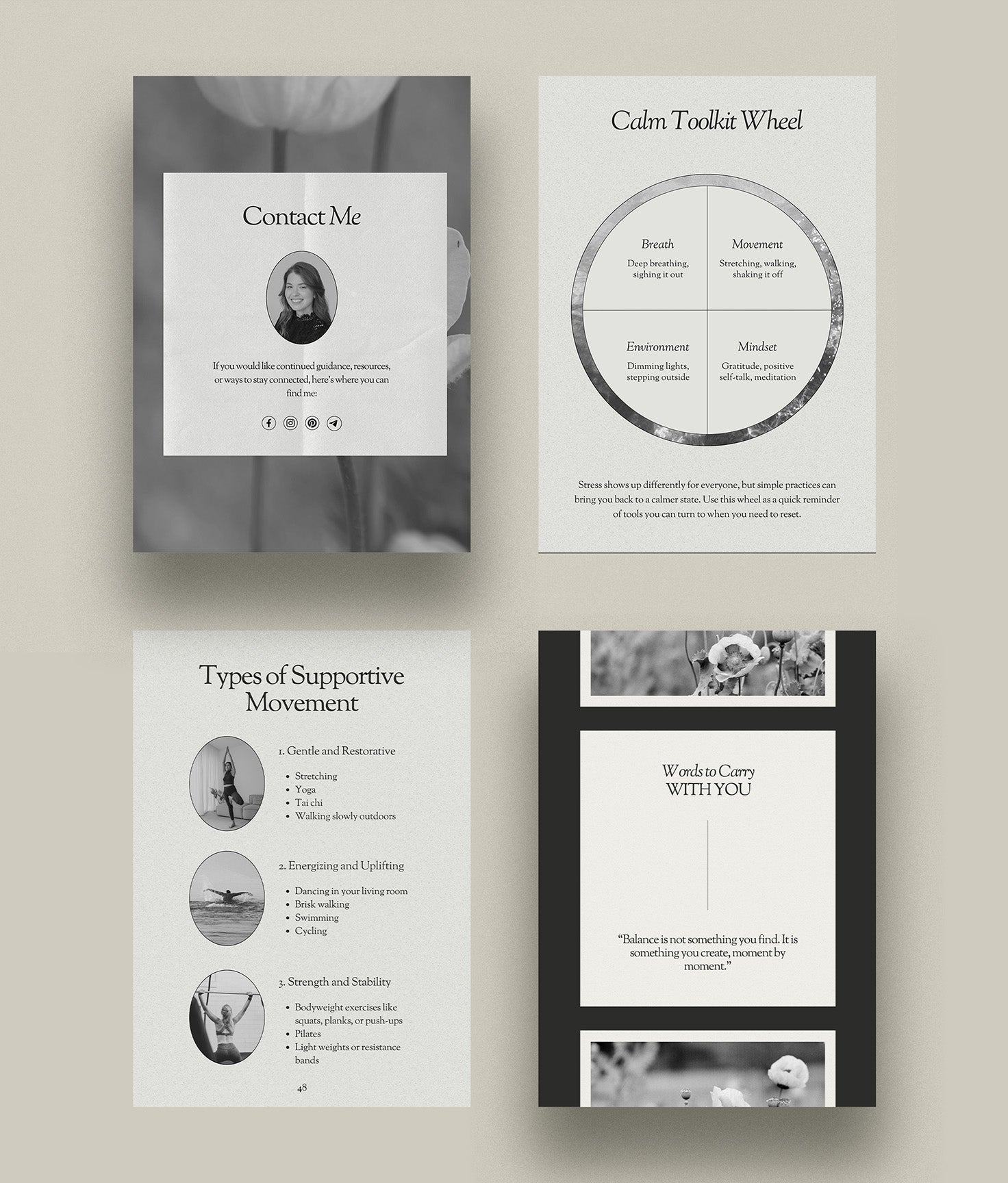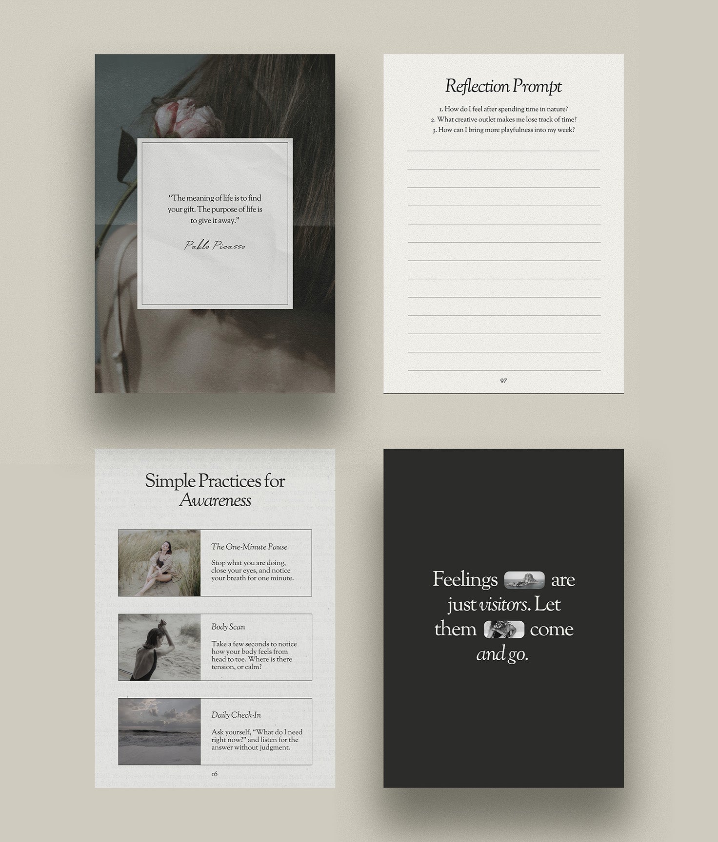 • Inspiring quote pages, pause pages, and transition layouts to create flow and calm