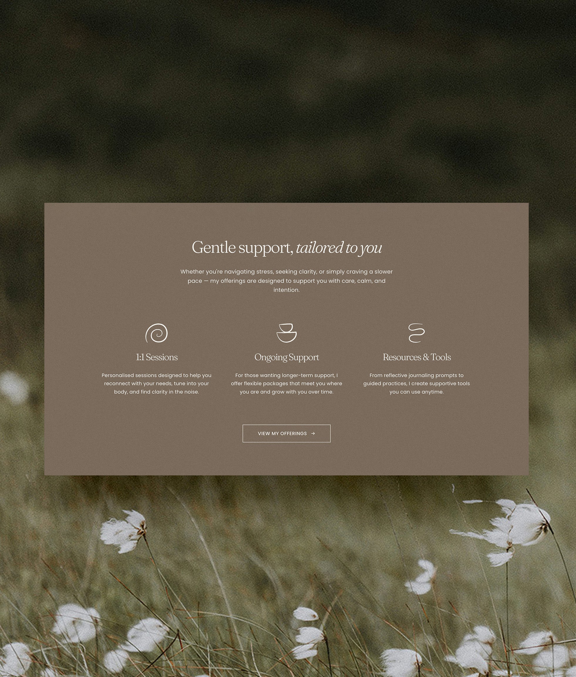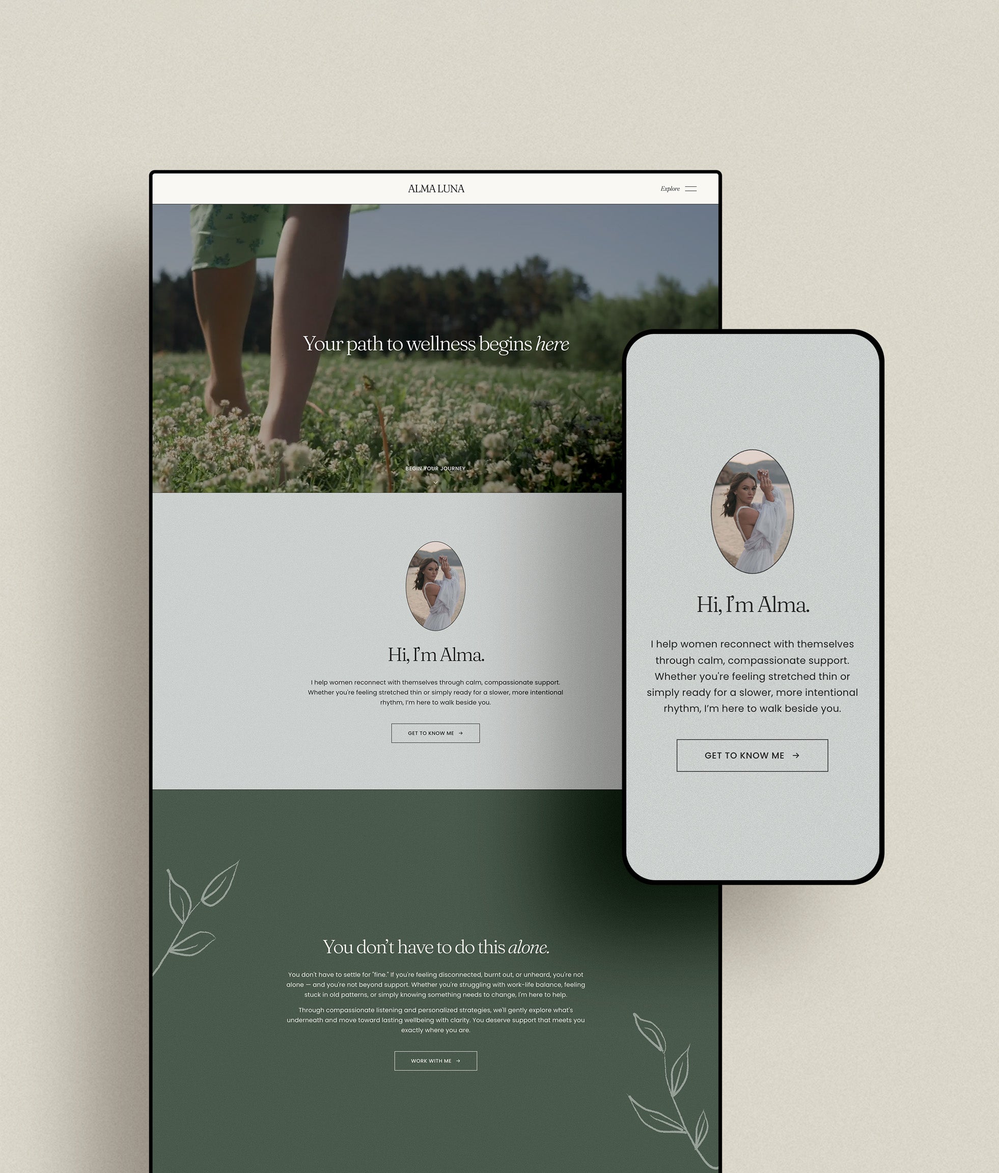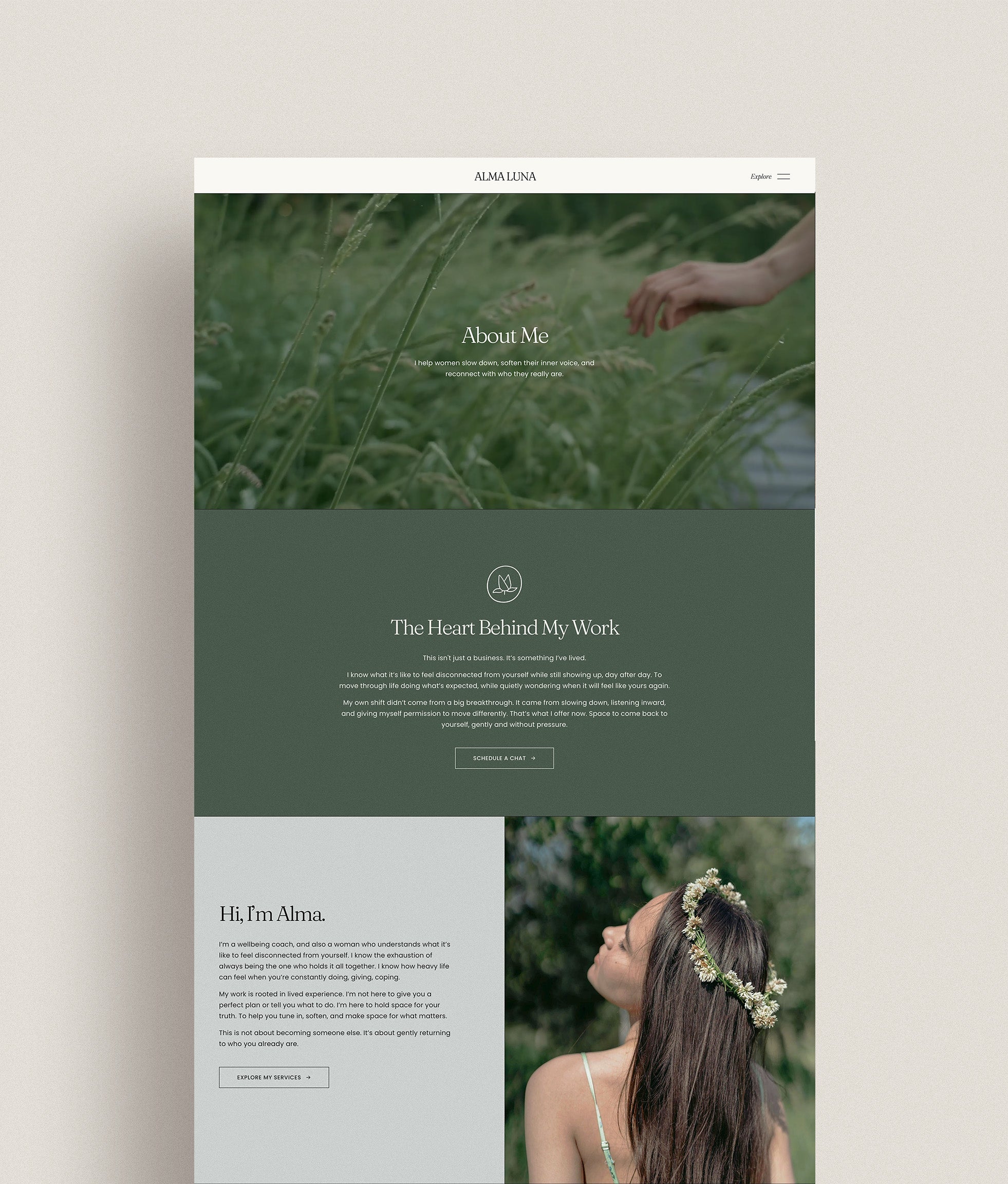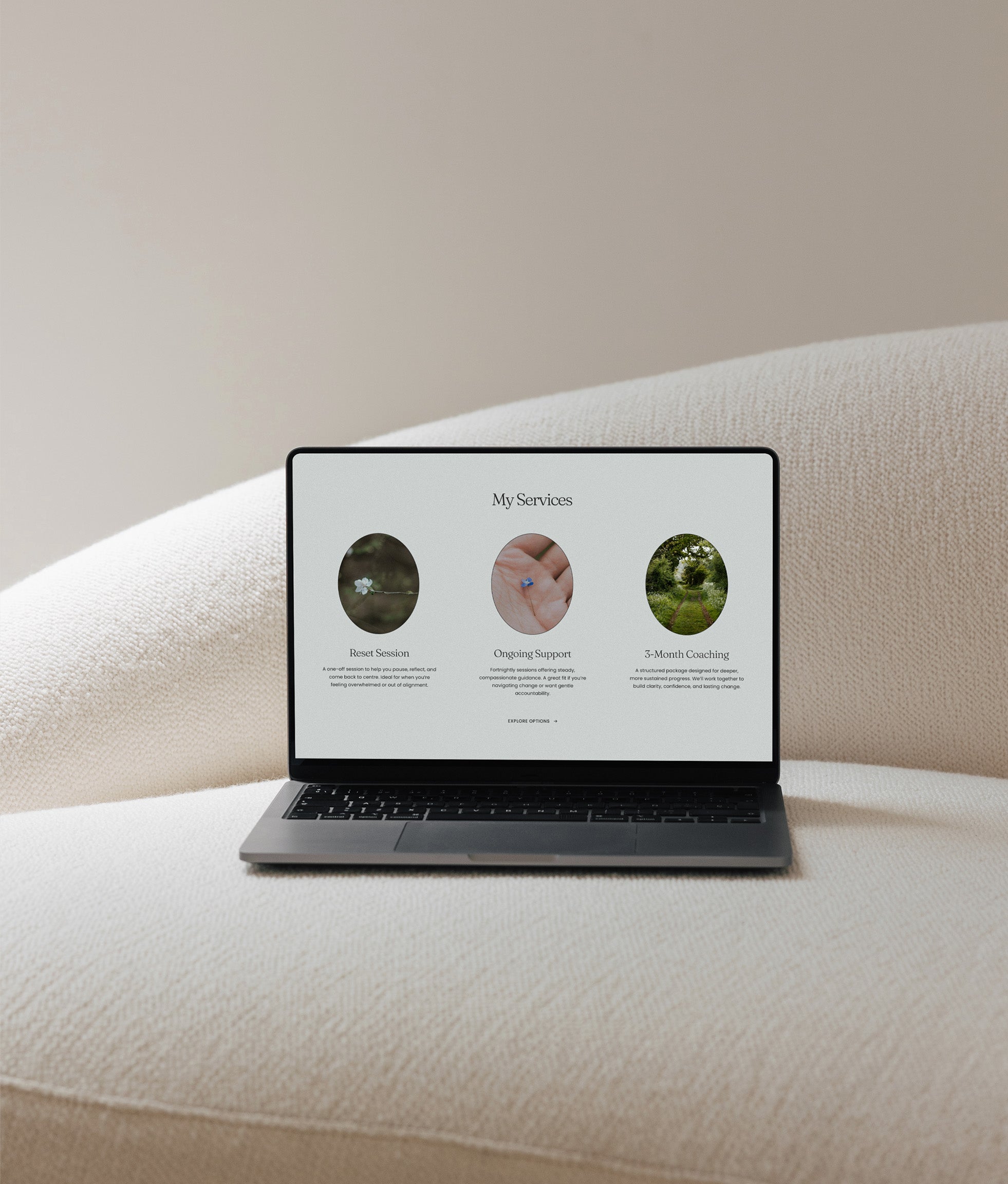 A calming, professional Squarespace website template designed for wellbeing coaches, wellness brands, and service-based businesses. Featuring soft, clean layouts and thoughtful custom features, this template includes everything you need to launch a beautiful, functional website without starting from scratch.